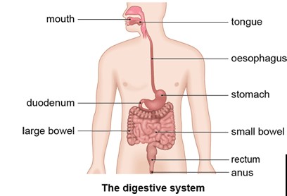 Food then passes into the first part of the small intestine (the duodenum). Here food mixes with more enzymes which come from the pancreas and lining of the gut. The enzymes break down (digest) the food. Digested food is then absorbed into the body from the small intestine.