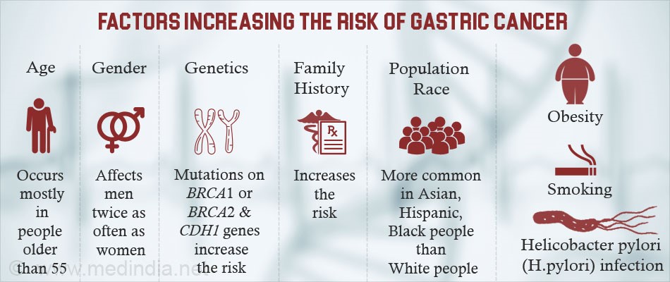 Gender. Stomach cancer is twice as common in men as it is in women.