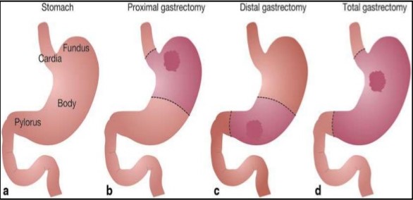 Removing the tumour may be curative if the cancer is in an early stage. The common operation is to cut out the affected part of the stomach. Sometimes the whole of the stomach is removed. Sometimes this is done laparoscopically (keyhole surgery). Even if the cancer is advanced and a cure is not possible, some surgical techniques may still have a place to ease symptoms. For example, a blockage may be eased by removing part of the stomach, or by using laser surgery or by a bypass operation.
